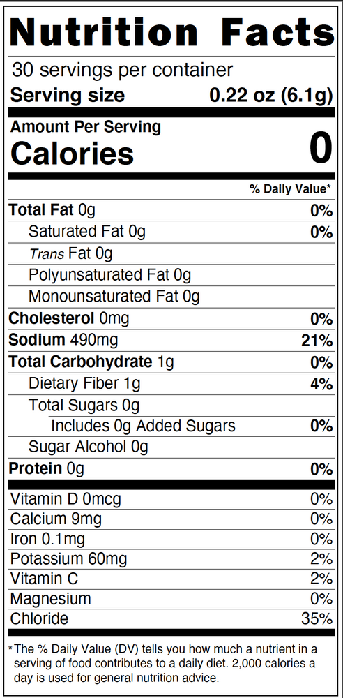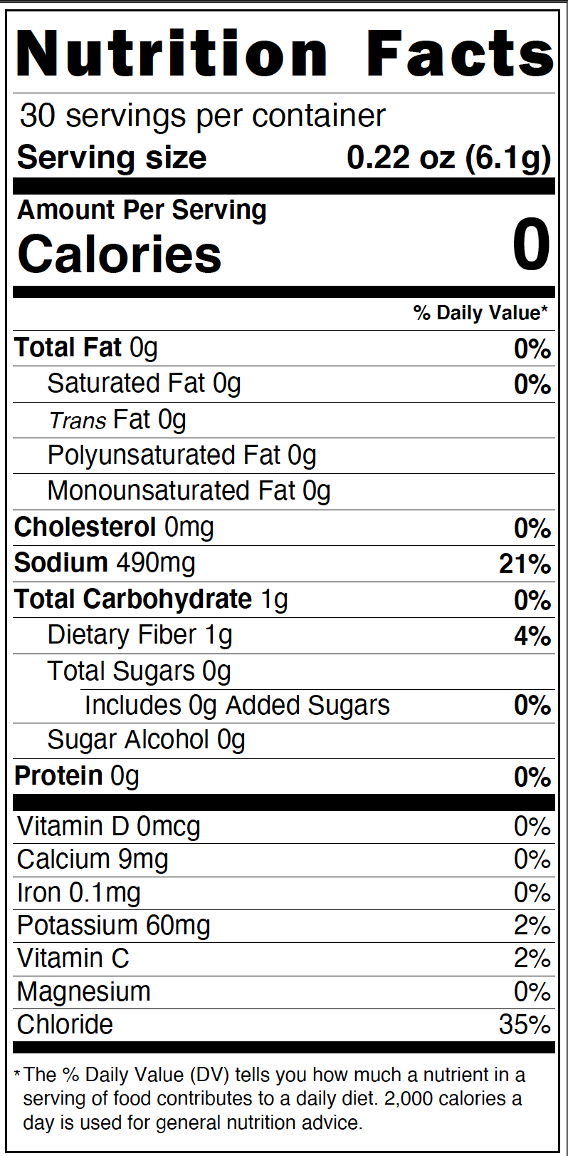 Ingredients: SheSalt™, organic mango extract, organic lime extract, organic dehydrated coconut water, organic allulose, organic vanilla extract, organic saffron, organic cinnamon, organic baking soda.