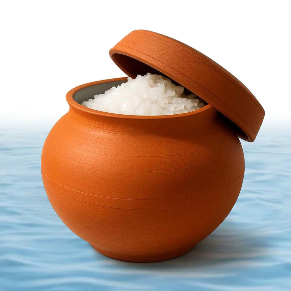 While regular table salt loses most of its nutrients during processing, we do something completely different. We bake our sea salt in handmade clay jars inside clay caves for 12 hours. This unique process creates something really special—pure, clean, mineral-rich salt that's naturally alkalizing.